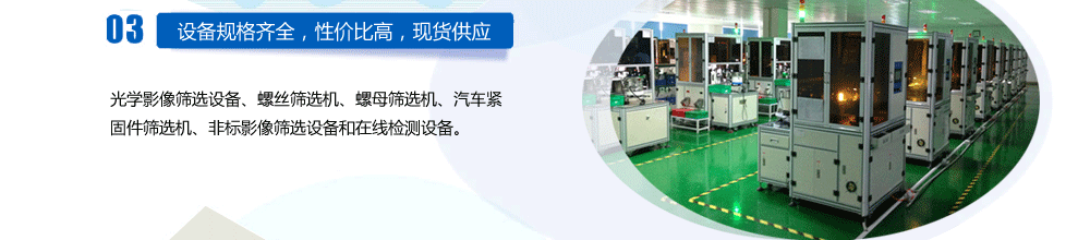 主營產品:光學影像篩選機,螺絲全檢設備,螺母全檢設備,自動在線檢測設備