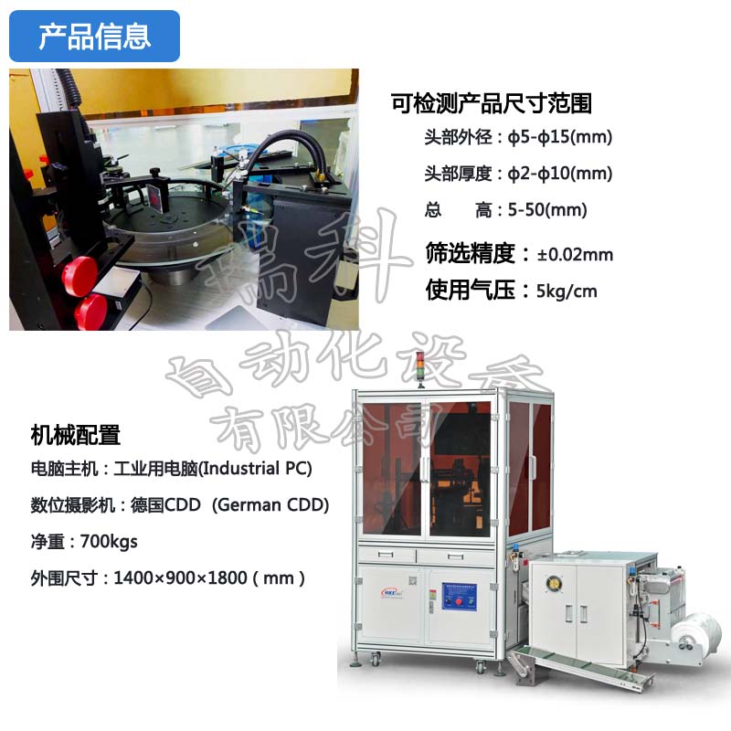 硬體配備包含振動(dòng)送料機(jī)、下料軌道、檢驗(yàn)平臺(tái)、計(jì)算機(jī)系統(tǒng)為一安全、便利,且節(jié)省人力成本的自動(dòng)化設(shè)備。分別介紹如下:
