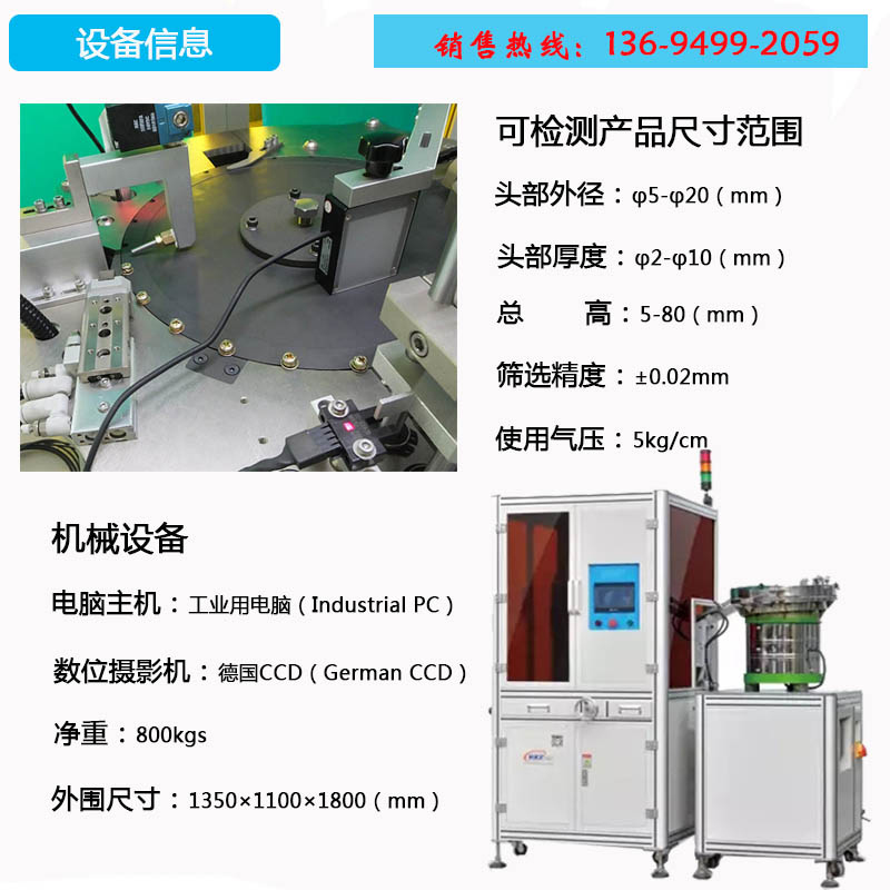 檢測產品外觀、長度、高度、螺牙、頭裂等。